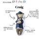 设计师的泰迪熊,为站立玩偶,后面有可爱的小尾巴,此熊族的特色唯有长长的手臂,可以环抱。衣服皆可穿脱。喜欢低调和独处的克雷格,穿衣风格简单的白T和卡其裤,但一定衣柜里要有一件很酷的风衣外套。