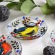 Small bird glass plates will be a bright accent on your themed party. Can be used with snacks or sweets.