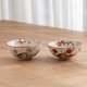 这款以京都梅花为主题的夫妻碗,是京都俊山窑的经典图纹。以淡雅的红与紫手绘出的优雅姿态梅花,加上金彩装饰其花蕊,呈现出京都的风雅之情。碗内也有着花草图纹,让吃饭多了一份美好的心情。风雅的夫妻碗,也是做为婚礼赠礼的最佳选择。