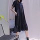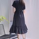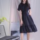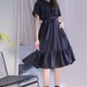 《现货》深蓝色轻薄纹理连身裙〈另附腰带〉