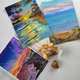 On a paper is drawn beautiful Incredible sunset by the sea with real emotions.
