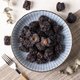 采收后以低温烘焙至果肉呈黑色状,再以日晒的方式收敛水分与营养,保留天然果干的营养成分。我们坚持不蜜糖,保留黑枣天然香气与自然甜度,剖开黑枣果核周围的果肉呈现新鲜的金黄色,而不是陈年久放的深黑色!