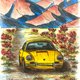 秋航水彩画,保时捷 911 艺术品,自然驾驶,黄色汽车