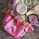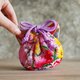 A mini-sized drawstring pouch that fits in the palm of your hand. Mimi uses silk fabric / brocade weave, which is the most suitable for the flower lover fabric of the main body, and both have a quilt core, making it extremely comfortable to hold. You can put it in a bag or use it as a pouch for going out.