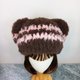 触感非舒服柔软的仿水貂毛皮草线纯手工鈎织,可爱小熊耳帽。