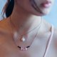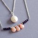 A dainty two-layer necklace that captures the understated beauty of baroque freshwater pearls and pear-shaped Pink Opal stones. Complemented by striking dark magenta Hematite rondelles.