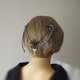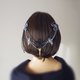 左右两侧各有一枚发梳,中间以柔和垂坠的装饰结相连,