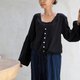 蓬松的袖子与一整排的贝壳钮扣是此款的特色。