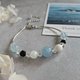 海蓝宝(8mm)、黑曜石(5.5mm)、白水晶(7.5mm)、白色雪花幽灵(7mm)、尾链小点缀为海蓝宝(3mm)