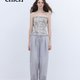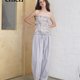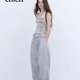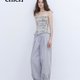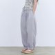 灰調淡紫色 輕松神褲 抽繩造型剪裁休閒長褲