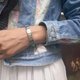 这款手镯外层是天然石,下层是不锈镯弹弓带,不像平常的水晶珠带,怕用久了就是很松很易折断,而且配带超方便!