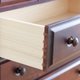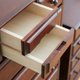 抽屉的前板与侧板是用接合的方式,使用了“鸠尾榫接合”榫接中强度最强的固定方法。没有使用多余的金属配件,所以也不会锈蚀或劣化,非常耐用。当然也有设计性,打开抽屉,即使侧着脸看,也能看到漂亮的作工。兼具全部的物品,可以说是在传统技法上,一寸也不能过的卓越技术是不可或缺的。