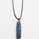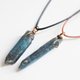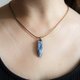 使用天然蓝晶石,手工绕古青铜金属线,配以棉腊绳。