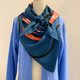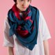 跳脱冬天的黑白灰, 对比的颜色更能擦出不一样的火花!搭配基本色系的服装都超级跳!聪明的色彩配置可以自行调整红色露出来的部分,搭配服装、或是心情有时候不想那么花也可以卷ㄧ卷、打个结,靛蓝的底色露出黑边也很好看!