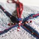 黑色底上面的白色不规则绣线再搭配滚边的红线