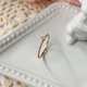 不采用市面上常见的圆钻制做钻石戒指,改采用长方形钻石。并运用矩形(长方形钻石)与规形(戒脚上的金珠)形成有趣的对比,