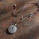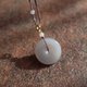 天然和田平安扣吊坠,冰底烟紫料,冰润十足,脂份好,玉质细腻,搭配精美手工绳,坠尺寸约24×5.7mm