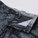 以灰绿为基底,辅以灰黑色不规则图形,以及不明显的白色线条图形组合而成,独特的迷彩花纹,交错出暗夜中微见冰原遍布的景象。