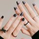 可爱的潮气珍珠配件+黑色磁力渐层美甲