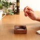 使用胡桃木,十足高级。这一款是使用美国产的高级胡桃木制作而成的菸灰缸。菸灰缸底附玻璃片当底板,无须担心点燃的香菸放上去会着火。这是由专门制作餐垫、室内布置装饰品、玩具等各种手工制品的佐佐木工艺所生产的。此外,产品会确实盒装,适合当礼物馈赠。