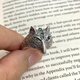 Victorian Style Fox Head Ring with Emerald Stone 925 Sterling Silver