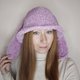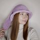 钩针编织兔子水桶帽大人非常棒,非常柔软亲肤!带有兔子耳朵的淡紫色水桶帽。手工编织的可爱毛茸茸兔耳朵渔夫帽是本季最时尚的配饰! 2022 年带耳朵的蓬松水桶帽趋势是送礼的好主意!