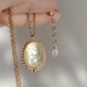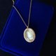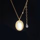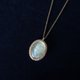 这枚吊坠镶嵌着一片独特的金云母。对着光看,石中仿佛封存着一缕阳光,漾动着璀璨的金色流光——这才是整件作品的灵魂所在。