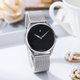 使用联想到太空星体迷人画面。全表整体布局简约,选配银色或玫瑰金色表壳,配黑色真皮牛皮表带或织网带,容易配衬。