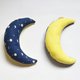 弯月造型,一面为蓝色星月布料、一面为黄色云彩棉布