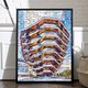 船舶,德逊城市广场纽约现代建筑奇迹照片印制海报。由交织的线条组成的大型抽象结构主导着由许多较小照片组成的马赛克。鲜艳的色彩和复杂的图案创造出复杂且具有视觉吸引力的构图。
