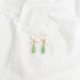 采用清新的绿色水滴形吊坠为主设计,搭配小巧的珍珠串饰,呈现出简约而不失精致的设计风格。绿色的吊坠象征自然与生机,为整体增添一丝活力感;珍珠点缀则带来典雅气质,适合日常佩戴或搭配较柔美的造型。
