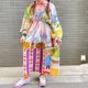 这是一件采用复古面料制成的特殊拼布连身裙。