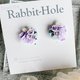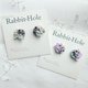 - 兔兔躲起来了! 这是以紫色花卉为主题的系列。“粉蝶”- 以带灰调的紫蓝色配搭而成;“丁香”- 以不同的粉紫色和粉绿色配搭而成,适合不同衣着风格的妳。