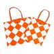 由 100% 再生涤纶制成的信封状可折叠袋子,面料光滑、柔软且用途广泛。 这款轻巧的手提袋配有带垫的肩带、钮扣和内袋。 您将舒适地使用这个旅行伴侣! 橙色印有凌格图案。产品手工制作,尺寸可能略有不同。