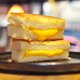 不加一滴水 100% 纯鲜奶吐司制作,中间夹“双层”浓郁起司,外层裹上奶油,撒上粗砂糖,10 分钟烘烤出来脆皮咸甜口感超迷人!