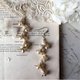 - Gold flower and vintage pearl, Fresh water pearl and crack crystal connected vertically Yurayura earrings OR earrings.