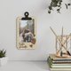 - Wooden 10 by 15 centimeters photo frame shaped as a clipboard with text on the bottom left and 3 hearts on the bottom right. The text is - bestie Juliette. This frame is 23 by 13 centimeters. The frame can be painted in different colors. The text can be changed.