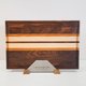 美国Fifty9 Design New York原木拚色砧板 #5 送砧板架 尺寸: 长45厘米宽30厘米厚4.3厘米 重量: 3.5公斤 材料: 北美樱桃木(浅红区域),北美枫木(浅白区域),北美胡桃木(褐色区域)
