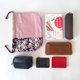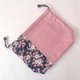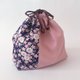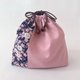 The drawstring bag is made from linen and kimono (Silk Crepe) with cherry blossom pattern.