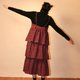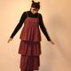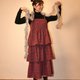 苏格兰红格纹布料,细肩绑带设计,可身型自由调整长度,下摆多层荷叶细褶样式,增加整体立体感,一件式蛋糕洋装。