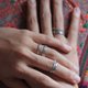 This set of 8 rings is crafted by Thai artisans in 98% pure Silver. The surface is treated in 3 different ways to obtain different effects. The rings can be worn as a whole set or separately. They are simple and modern, extremely lightweight and pleasant to wear.