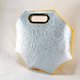 背面则采用了经过皱褶处理、呈现深邃光泽感的银色Tyvek,并与黄色帆布夹合,形成三层结构。透过增加材质的硬度,成功塑造出如贝壳般饱满的立体设计。