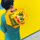 包款正面使用0.5mm厚的黄色PVC透明板,其适度的透明感与内侧的黄色帆布相互辉映,营造出鲜明的色彩效果。