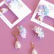 - 手工串珠 小花(蓝紫色)水滴形珍珠 日本耳针/夹式耳环