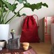Rick rack tape of various materials and sizes is sewn by tearing or tying it into a drawstring bag of just the right size.