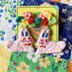 耳环和胸针是用毛毛质地的线来绣的 和一般的绣花线不同 做出毛绒绒的质感 因为绣的时候在布面上拉扯 毛毛会飞出来 所以绣的时候每条线不能太长 所以比较花时间 兔子身上除主色之外 还配了不同颜色做点缀 更加细致和有梦幻的棉花糖的感觉