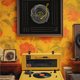 ✦ 日历以抽象线黑胶唱片形式说明。