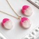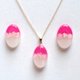 这款坠饰以三朵小花作为分界,呈现出白色与玫瑰粉的双色渐层,可爱又迷人。