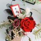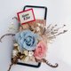 花材上采用日本不凋玫瑰花、不凋绣球花、不凋叶材配材等