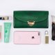 这款的原型是店里另一个款风琴包,但是用的是菊花钉装饰的四合扣,再一次客人的定制中,我们采纳了客人的建议用了亮金色的插扣,仅仅只是换了一个扣件,整个风格就完全不一样了,从原来复古可爱变成了简约时尚,所以说是客户缔造了这款新的风琴包。